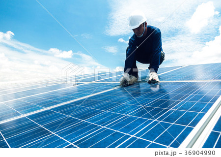 engineer team working on replacement solar panel