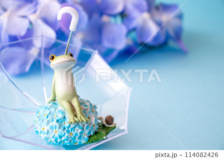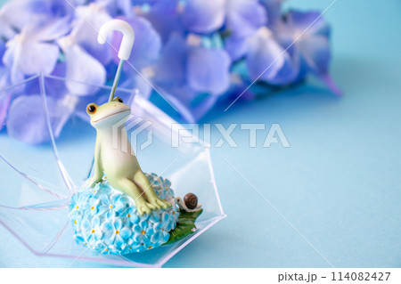 梅雨のイメージ 雨傘とカエル