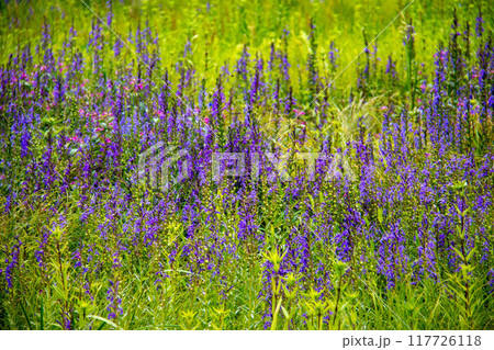 入笠山の夏 入笠湿原の風景 サワギキョウ 長野県富士見町 日本