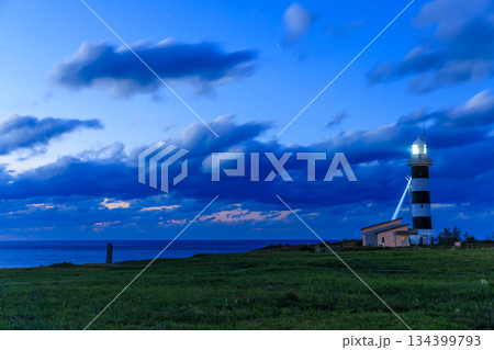 日没後の秋の入道埼灯台 秋田県男鹿市