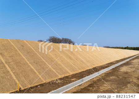 河川敷の築堤工事 治水対策の堤防整備 入間川流域 2022.02 f-3 マット感