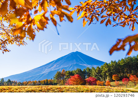 【山梨県】モミジの紅葉が美しい、全国育樹祭記念広場から眺める富士山