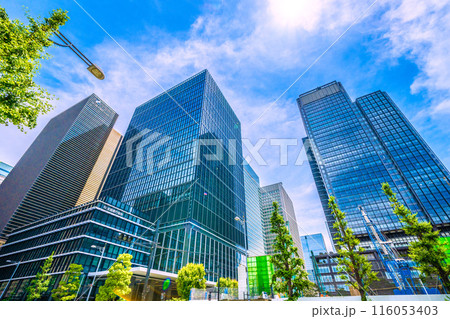 日本の東京都市景観 丸の内のみずほ丸の内タワーなどを望む