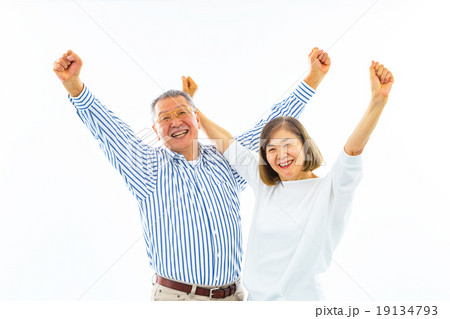 ガッツポーズするシニア夫婦
