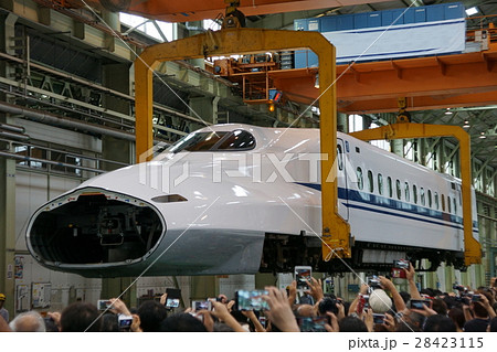 浜松工場で整備中のN700系