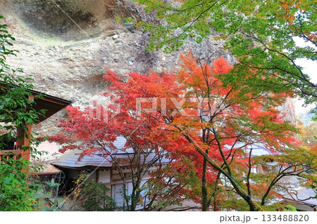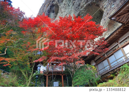 【愛媛県】晴天の岩屋寺の大師堂と紅葉