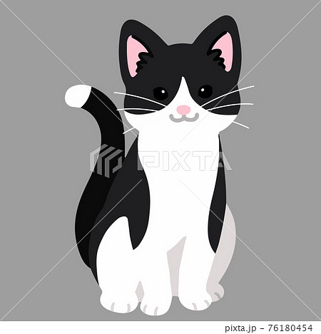 前を向いて座るシンプルで可愛いハチワレ猫のイラスト 主線なし