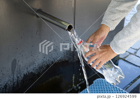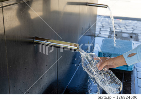 〈島根県〉奥出雲 延命水を汲む女性の手