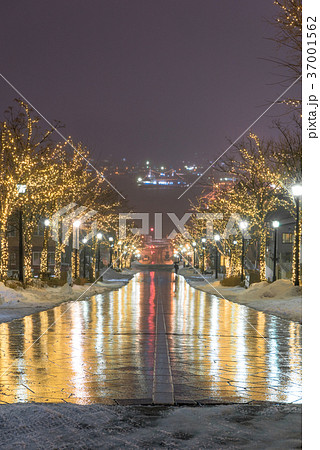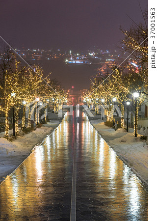 【縦構図】函館市八幡坂 冬のライトアップの様子 北海道函館市にて