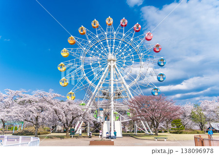 「青森県」満開の桜と観覧車の風景 八戸公園・子供の国 八戸市