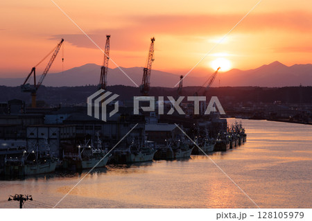 グレットタワーみなとと夕焼け(青森県八戸市)