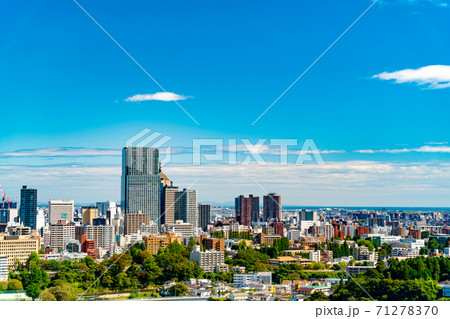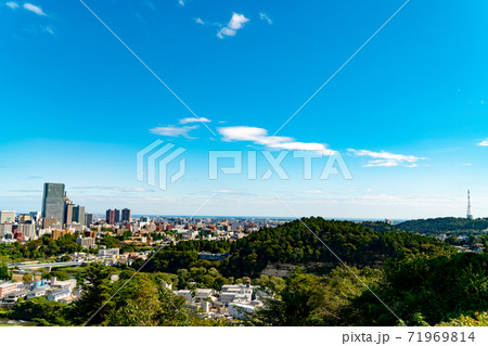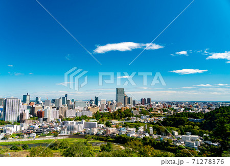 青空の青葉城址と仙台市街
