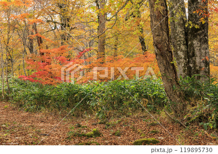 秋の尾瀬 草紅葉と森の紅葉 八木沢林道