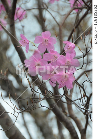 春の赤城山に咲くアカヤシオの花