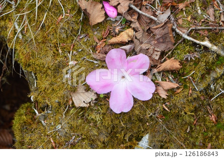 アカヤシオの花びら・苔(篭山・鳥居峠/群馬県前橋市)