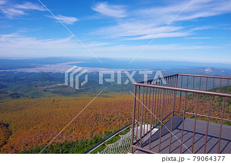 青森県 紅葉時期の八甲田ロープウェー山頂公園駅展望台から見た青森市街と陸奥湾