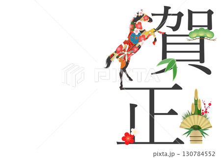 年賀状|午年|鶴亀と松竹梅の金背景絵柄テンプレート