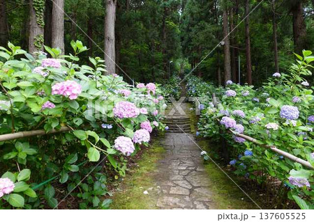 満開のアジサイ 紫陽花 あじさい 出塩文殊堂 山形市