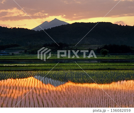 ロマンチック茨城(水田に映る夕焼けが、やけに赤くみえる。幼い頃の思い出がよみがえる。)石岡市、八郷