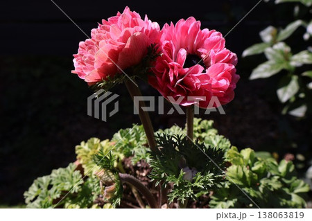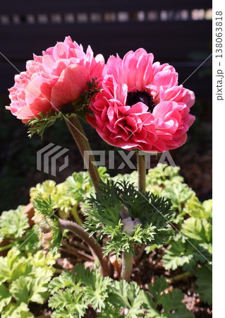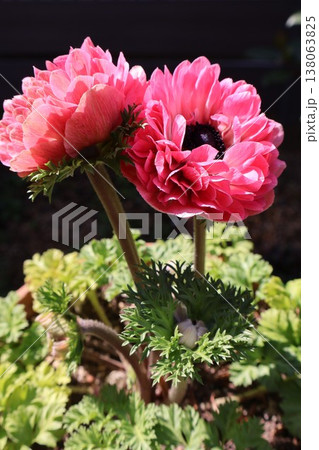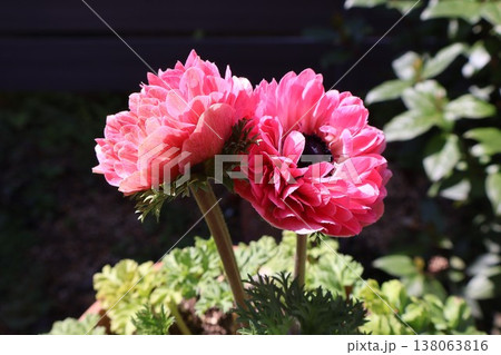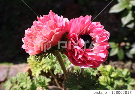 ピンク色の八重咲きアネモネもも