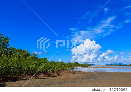 ヤエヤマヒルギ マングローブ イメージ 干潟 河口 青空 夏 快晴