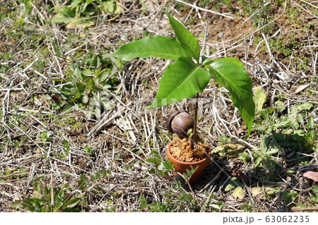 自然 植物 オキナワウラジロガシ、実生です。先端が割れたドングリから根と芽が出ているようです