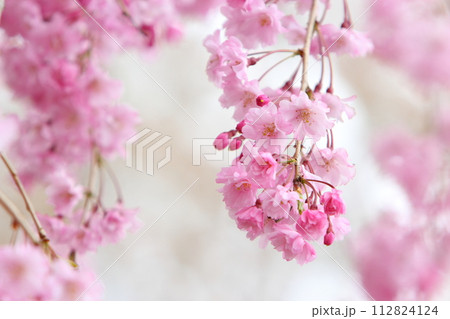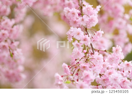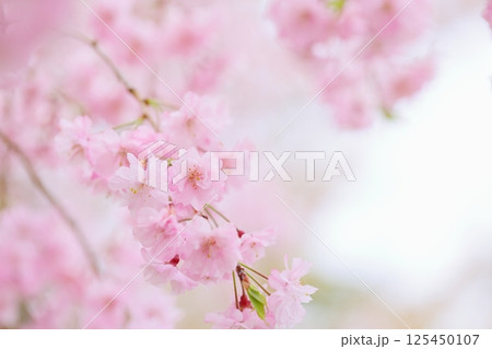 満開の八重紅枝垂れ桜のクローズアップ 【背景ボケ】 【背景ぼかし】