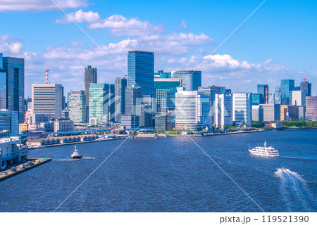 日本の東京都市景観 新橋や竹芝、東京駅、日本橋、晴海、晴海客船ターミナル跡などを望む=13日