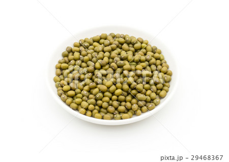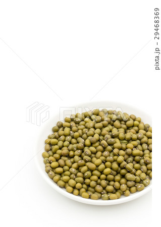 白いお皿に入った緑豆 もやしの種 ムング豆