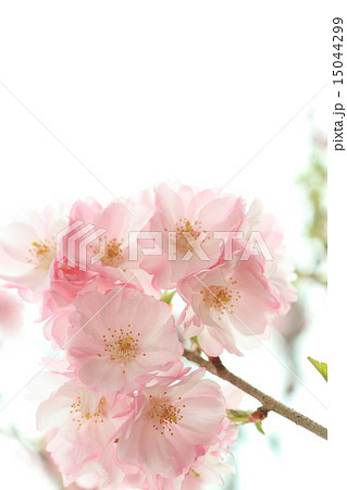 満開の八重紅彼岸桜のクローズアップ 【白背景】 【空背景】