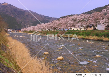 智頭川(鳥取県八頭郡智頭町)川べりに咲く桜の花