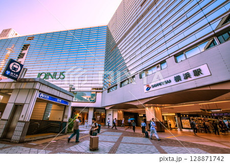 日本の横浜都市景観 朝…SOTETSU 横浜駅や横浜市営地下鉄ブルーライン横浜駅出入口などを望む
