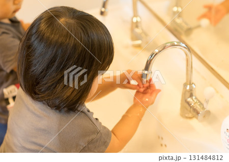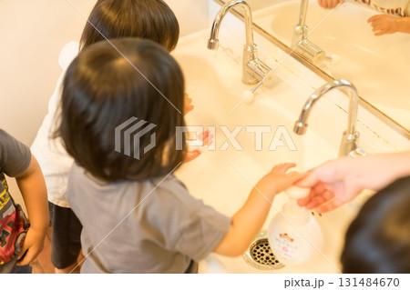 保育園で手洗いする園児