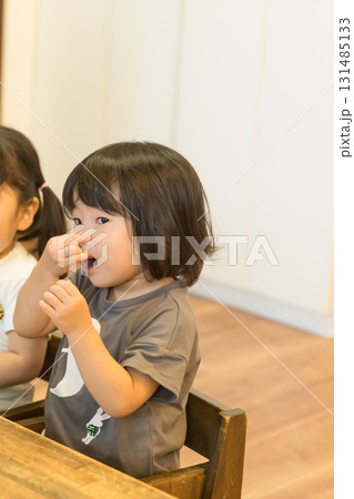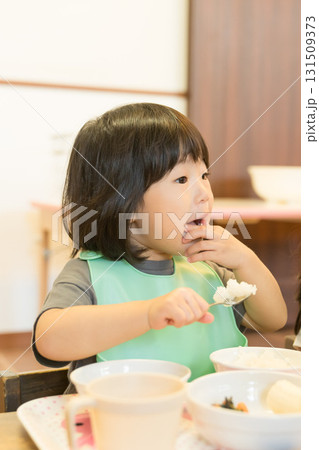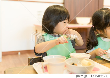 保育園でランチを食べる園児