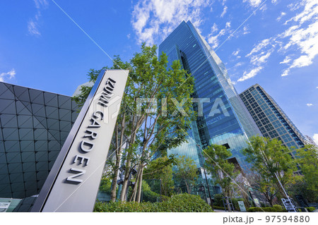 日本の東京都市景観 六本木一丁目駅前の超高層ビル群などを望む