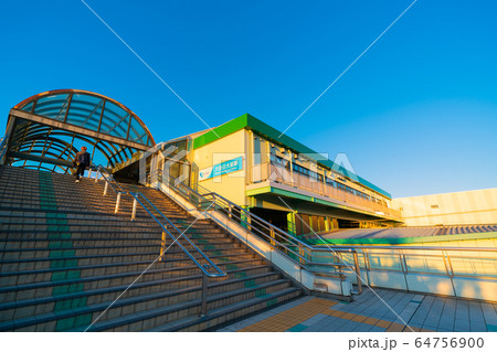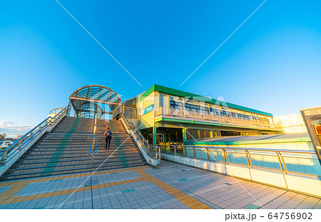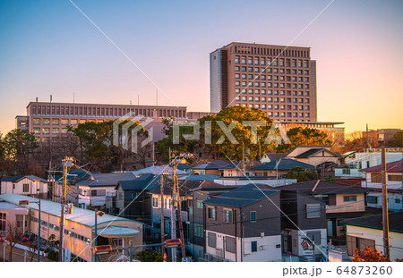 日本の藤沢都市景観 夕陽を浴びる六会日大前駅などを望む