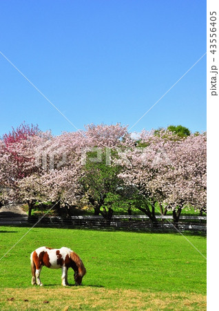 日本大学生物資源科学部の桜並木とポニーと青空