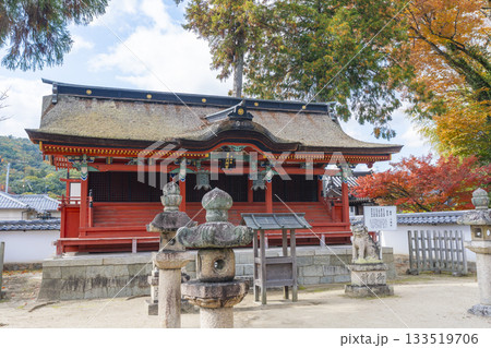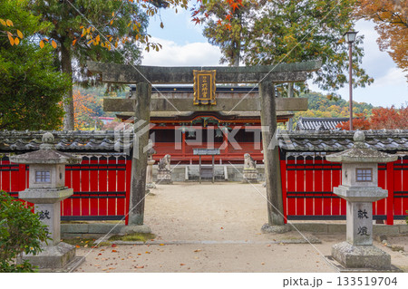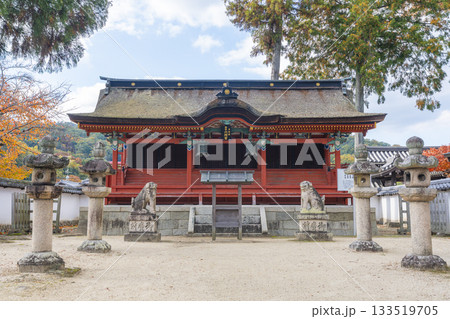日吉大社 表参道の石灯篭と紅葉 滋賀県大津市坂本