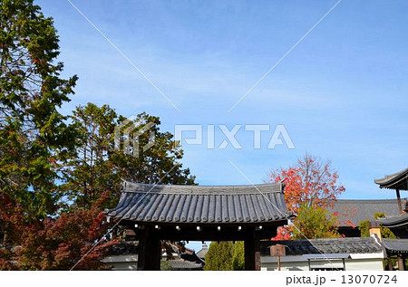 秋の東福寺 龍眠庵の土塀と紅葉 京都市東山区