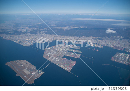 飛行機からの風景 神戸空港へ高度を下げる 神戸港付近