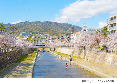 芦屋川 飛び石のある風景 業平さくら通り 兵庫県芦屋市大正橋付近