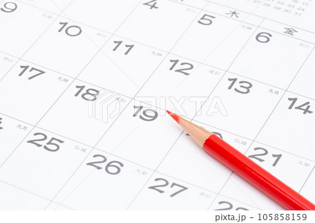 カレンダーと赤鉛筆