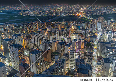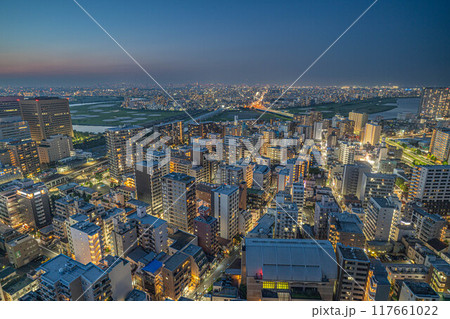 [夜景]川崎市・大田区の街並み[川崎市役所本庁舎展望ロビースカイデッキ]
