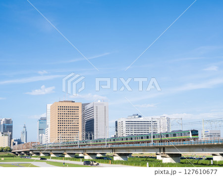 川崎駅前のビル群と六郷川橋梁【神奈川県・川崎市】