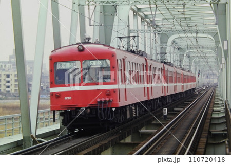 京急・旧600形632他8両、快特、六郷川橋梁、1980年2月14日