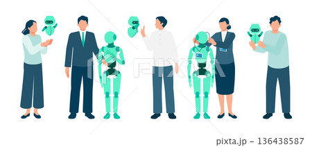 一人ひとりに専属AIアシスタントがつく未来の働き方を描いたビジネスイラスト