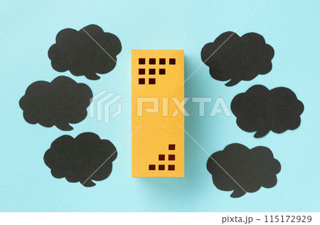 マンションと黒い吹き出し ビル 不動産 相続