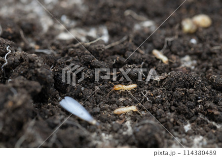 ヤマトシロアリ(中央に羽化直前の羽アリ)