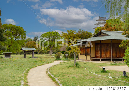 坤櫓を背景に武蔵の庭園の御茶屋の風景