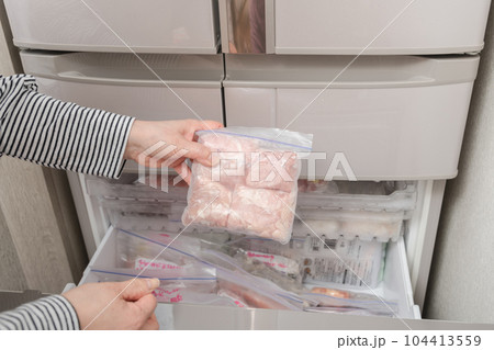 【冷凍室から鶏ももを出す主婦】